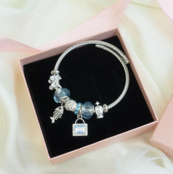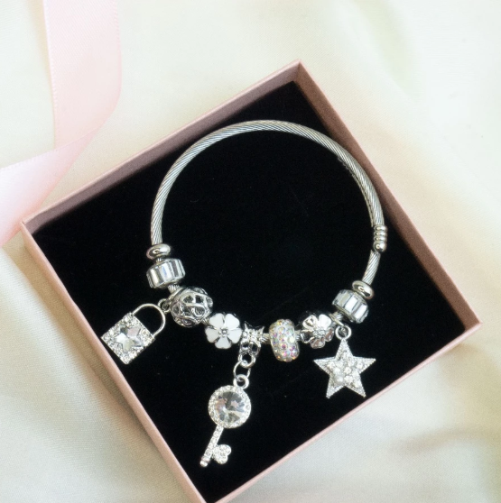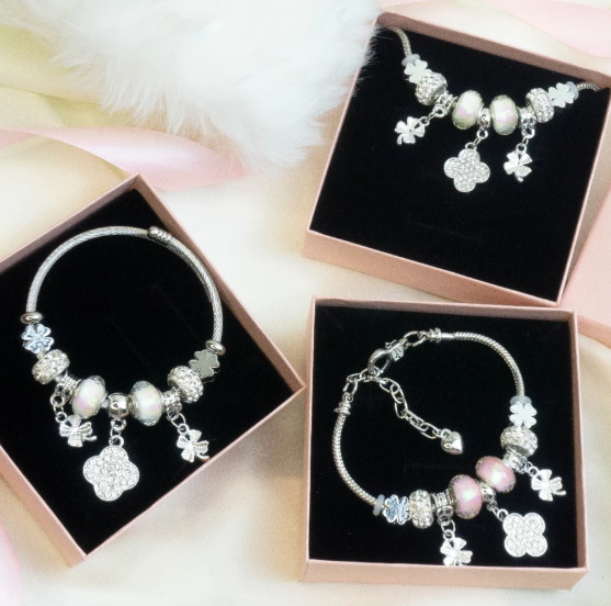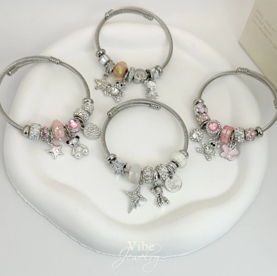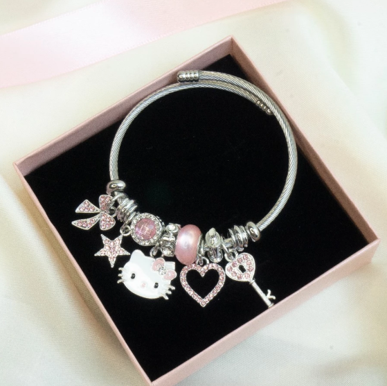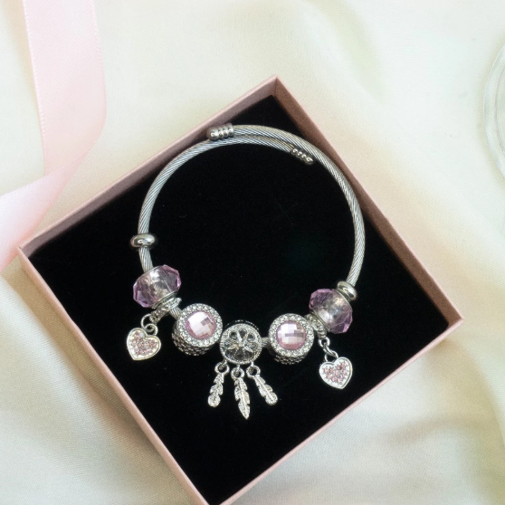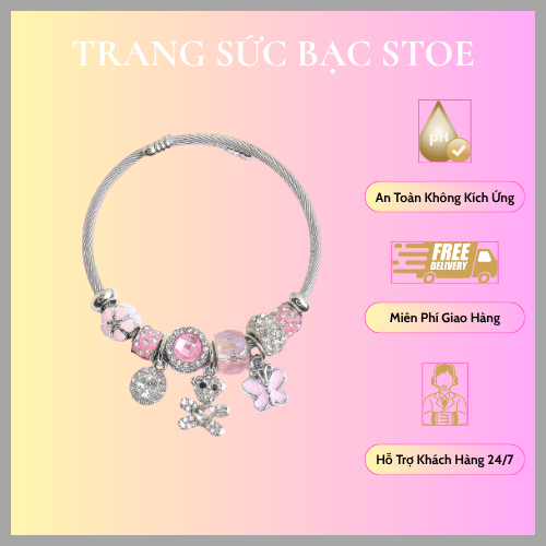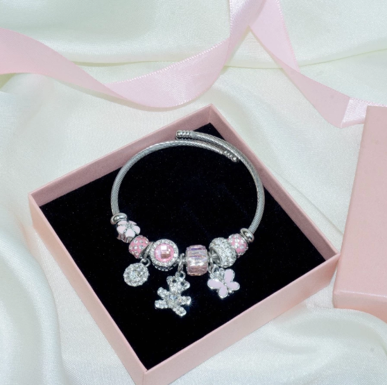 Vòng tay Pan gấu hồng, lắc tay nữ gắn charm.